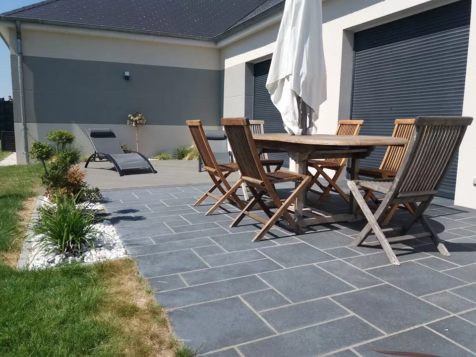 - L'aménagement de terrasses, cours et allées.